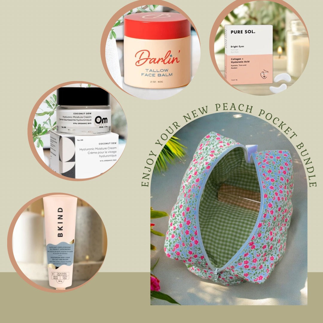 "The Peach Pocket Skincare Bundle is so thoughtfully curated. Every product is high quality and works beautifully together. Plus, the Peach Pocket Bag is gorgeous—I take it everywhere!"